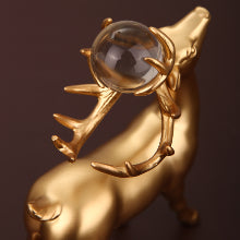 The crystal ball gold reindeer decoration uniquely features a removable crystal ball, symbolizing opulence and contributing an otherworldly allure to your decor.